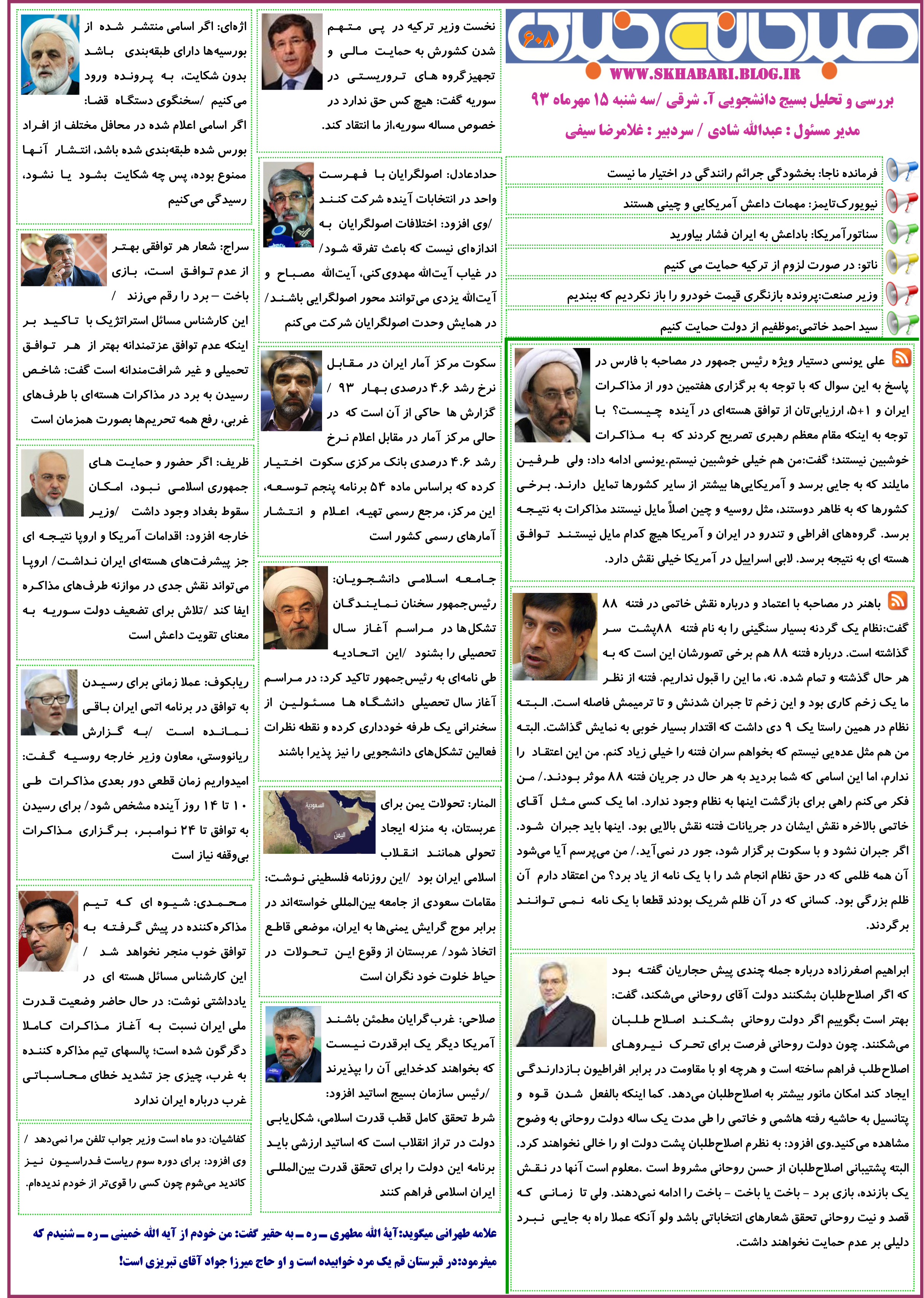 گزینه های مطرح برای تصدی وزارت علوم ، اخبار نشست همگرایی اصولگرایان، ناگفته های زاکانی از مسایل مختلف ، سخنان سخنگوی وزارت امور خارجه آمریکا در مورد توافقات هسته ای و ....
